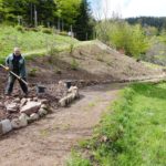In den jüngsten von Corona ausgebremsten Monaten ist ein weiterer Gartenbereich entstanden: mit einem umgestalteten Hangbereich, den der gebürtige Oberkirchner mit dem Faible für englische Gartenkultur und der Liebe zur Schwarzwaldnatur derzeit mit rund 450 Pflanzen bestückt. Ein von Schmuckgräsern dominiertes Areal wird hier das Resultat sein. In dieses fügt sich eine frisch errichtete Halbrund-Mauer aus alten Ziegeln ein, die einst das Dach des früheren Bauernhauses bedeckten und im dazugehörigen Wald gelagert waren.