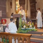 Am Ende des Gottesdienstes dankte Pfarrer Alfred Haas allen, die den Festtag vorbereitet und mitgefeiert hatten, namentlich dem Gemeindeteam, den Erstkommunikanten, Dieter Benson an der Orgel und den Mitgliedern der Trachtengruppe, die zum Festgottesdienst in ihrer schönen Tracht gekommen waren.