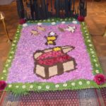 Am Vortag hatten die Erstkommunionkinder und Mitglieder des Gemeindeteams vor dem Hauptaltar und im hinteren Eingangsbereich der Kirche mehrere kleine Blumenteppiche ausgelegt.
