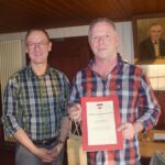 Der Verein wollte insgesamt 17 Mitglieder für ihre langjährige Mitgliedschaft ehren. Allerdings war nur ein Jubilar der Einladung zur Teilnahme an der Mitgliederversammlung gefolgt. Arno Lehmann überreichte Rolf Stiewe für 50-jährige Mitgliedschaft die Ehrennadel mit Urkunde und ein Weinpräsent.