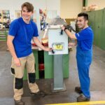 Für die Beleuchtung des Weges hat das Planungsteam in diesem Jahr ein neues Konzept aufgestellt. Zum einen werden die Stationen mit solarbetriebenen Lichterketten ausgestattet. Zum anderen haben die gewerblichen Auszubildenden der Erwin Junker Maschinenfabrik GmbH die Aufgabe gerne angenommen, einen alternativen Antrieb für die Beleuchtung des Hauptweihnachtsbaums zu bauen. Maxim Bächle und Salih Albayrak bauten gemeinsam mit Ausbildungsleiter Landolin Jilg ein besonderes Schwarzwaldhaus. Die darin verbauten Handkurbeln werden den Weihnachtsbaum mit Muskelkraft zum Leuchten bringen.