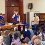 Am Montagmorgen hatten die Grundschüler ein besonderes Erlebnis: Zunftmeister Stefan Haas und Glas hansel Angela Kiesel unterrichteten sie in der Turnhalle der Grundschule über das närrische Brauchtum in Nordrach.