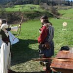 Großes Interesse fand auch das Bogen- und Armbrustschießen, bei dem sich Kinder und Erwachsene erproben konnten. Landsknechte gaben Unterweisungen im Schwertkampf und ein Ritter in seiner prächtigen Rüstung ließ sich gerne fotografieren. Mehrere Musikgruppen unterhielten die Besucher mit Musik und Gesang.