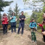 Und schon führte der Weg hinauf über das Bergle zur Teufelskanzel. Die grüne Tischdecke verhieß eine Stärkung: Moospfafflikör und getrocknete Datteln aus Israel. Wandern, beziehungsweise pilgern, macht hungrig. Und für den Aufstieg sollten alle gestärkt sein. Gesucht wurde der Abdruck der Hufe, die im Stein der Teufelskanzel sichtbar sein sollen. War es der Moospfaff, der mehrfach schon mit Hufen gleich einem Geißbock gesichtet wurde?