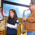 Paula Welle glänzte an der Querflöte mit einem Duett, begleitet von ihrem Ausbilder Eduard Scharich, und einem gefühlvoll vorgetragenen Solo. Chiara Schwarz an der Klarinette folgte als überzeugende Duettpartnerin mit ihrem Vortrag bei „Klezmer Melodies“ und dem Solostück „Yorkscher Marsch“. Annabell Apfel am Altsaxophon überraschte das Publikum mit ihrem Können bei dem Duett „Genau nach Maß“ und ihrem Solo „Donna, Donna“.