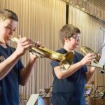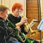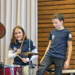 Es folgten die Schlagzeuger mit Nils Redder und Ausbilderin Annette Tafler bei einem Duett auf der Snare Drum sowie am Drumset Fin Schwarz mit „Dinos Dance“ und Leo Vollmer mit „Computer Dance“, die gekonnt ihr Rhythmusgefühl unter Beweis stellten.
