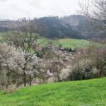 Bei trocknem Wetter ging’s in Serpentinen hoch zum Aussichtspunkt Kreuzbühl. Eine Hinweistafel sowie Reste eines Rebmäuerchens erinnerten daran, dass hier früher Reben gepflanzt wurden. Die Wanderer genossen die herrliche Sicht Richtung Biberach und Zell sowie das Kinzigtal hoch. Weiter führte der Panoramaweg Richtung Schirrmaierhütte mit Ausblicken nach Welschensteinach und bis hoch zum Kambacher Eck, geprägt von den Windrädern. Einige blühende Bäume ließen den Frühling erahnen.