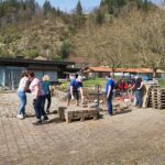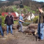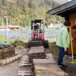 Werkzeuge und Baumaschinen, die von Michael Welle und dem Säge- und Hobelwerk Schnurr gestellt wurden, leisteten gute Dienste. So konnten bereits am ersten Arbeitseinsatztag gut 40 Tonnen Material ausgebaut, für den Wiedereinbau gelagert oder abtransportiert werden. Josef Lang fuhr mit einem großem Fahrzeug den Gehölzschnitt ab.