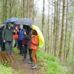 Nun führte der Weg abwärts zum Rebeck Pavillon. Man genoss den Ausblick über Biberach und zur Burg Hohengeroldseck. Kurzzeitig hatte der Regen aufgehört und die Gruppe folgte dem Wanderweg über die Rebhöfe nach Biberach. Leider setzte der Regen wieder ein und schnellen Schrittes ging man über Eisensprung und Bündt zurück ins Zeller Städtle. Der Abschluss wurde im Café Alt Zell gehalten.