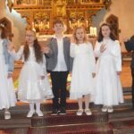 Statt einer Predigt erklärte Pater Irenäus den Sinn des Festtags im Gespräch mit den Erstkommunikanten. Wie die Kinder ihre Mutter am Muttertag beschenken würden, so habe Gott seinen Sohn auf die Welt gesandt, um den Menschen ganz nah zu sein. „Er ist das Brot, das Brot des Lebens“, hob Pater Irenäus hervor. Die Erstkommunionkinder trugen die Fürbitten vor und sangen das Lied „Gott bringt Farbe in dein Leben“. Sie hatten Blumen mitgebracht als Zeichen des Dankes.