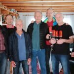 Eine Delegation des Tennisclubs Nordrach gratulierte Berthold Eble (zweiter von rechts) zu seinem 75. Geburtstag uns stellte einen Tennismaibaum mit vielen gelben Tennisbällen.