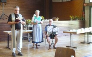 Ein ganz wichtiger und sehr schöner Programmpunkt an diesem Nachmittag ist immer um 17 Uhr die feierliche Weihe der Kräuter und Sträuße. Pfarrer Bonaventura Gerner erklärte sich auch dieses Jahr bereit, die Weihe zu übernehmen. Luitgard Bieser hat die Lieder und Texte vorbereitet. Musikalisch begleitet wurde die kleine Feier von dem Vereinsmitglied Herrn Georg Wimmer. Zu dieser ganz besonderen Weihe kamen extra sehr viele Besucher um ihre Büschel dann geweiht mit Gottes Segen nach Hause nehmen zu können.