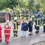 Noch vor Ort ergriff nach Abschluss der Übung Kommandant Heiko Spinner das Wort. Er bedankte sich bei allen Einsatzkräften von Feuerwehr und DRK, dass sie sich an diesem Samstagnachmittag die Zeit für die Übung genommen hatten. Besonderer Dank galt auch den Mitgliedern der Jugendfeuerwehr, welche die Verletzten stellte. Es freute ihn, dass auch die beiden Gemeinderäte Maria Schwarz und Christian Schwendemann sich für die Arbeit der Feuerwehr interessierten und die Übung aufmerksam beobachten. Bürgermeister-Stellvertreter Günter Eble konnte er auch begrüßen, welcher auch gleichzeitig aktiv bei der DRK-Bereitschaft mitwirkte.