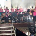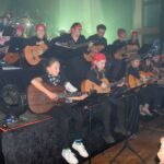 Im ersten Teil „Konzerte“ erfuhren die Besucher, wo sich der Verein überall präsentiert hat, und sang dazu „Ehrenwort“, „Westerland“ und „Sleeping in my car“. Zum Lied „Piraten wie wir“ erhielt der Verein noch eine erhebliche Verstärkung. Auf der Vorbühne sangen und musizierten fünfzehn Frauen, Männer und Jugendliche mit, die derzeit an der Gitarre von Mia Sophie Nock ausgebildet werden.