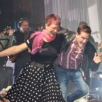 Der letzte Konzertteil war, wie könnte es auch anders sein, den „Zugaben“ gewidmet. Bei „Live is life“ forderte Stefanie Nock das Publikum auch zum Mitsingen auf. „Live is life“, „nanananana“ und „labadababbab“ konnten an den passenden Stellen von Pappschildern abgelesen werden. Zum Stück „Let´s twist again“ legten die „Profitänzer Diana & Jürgen Bruder“ einen perfekten Twist auf die Bühne, dieser wurde mit großem Beifall belohnt. Das Programm beendete der Gitarrenverein mit „YMCA“.