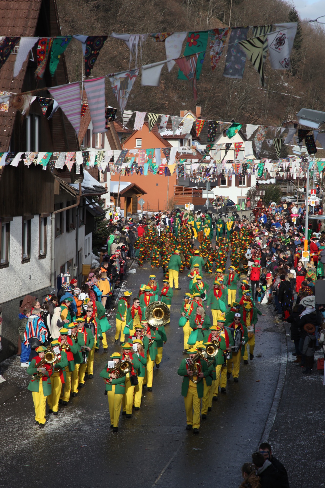 Zunftmeister Lothar Killig dürfte am Sonntagabend mehr als drei Kreuze geschlagen haben. Der Umzug am Sonntag zum Jubiläum der Bärenzunft lief ohne besondere Vorkommnisse über die Straße. Ein besonderes Ereignis gibt es doch zu erwähnen: Es war die größte Ansammlung von Hästrägern und Musikern, die Oberharmersbach je gesehen hat.