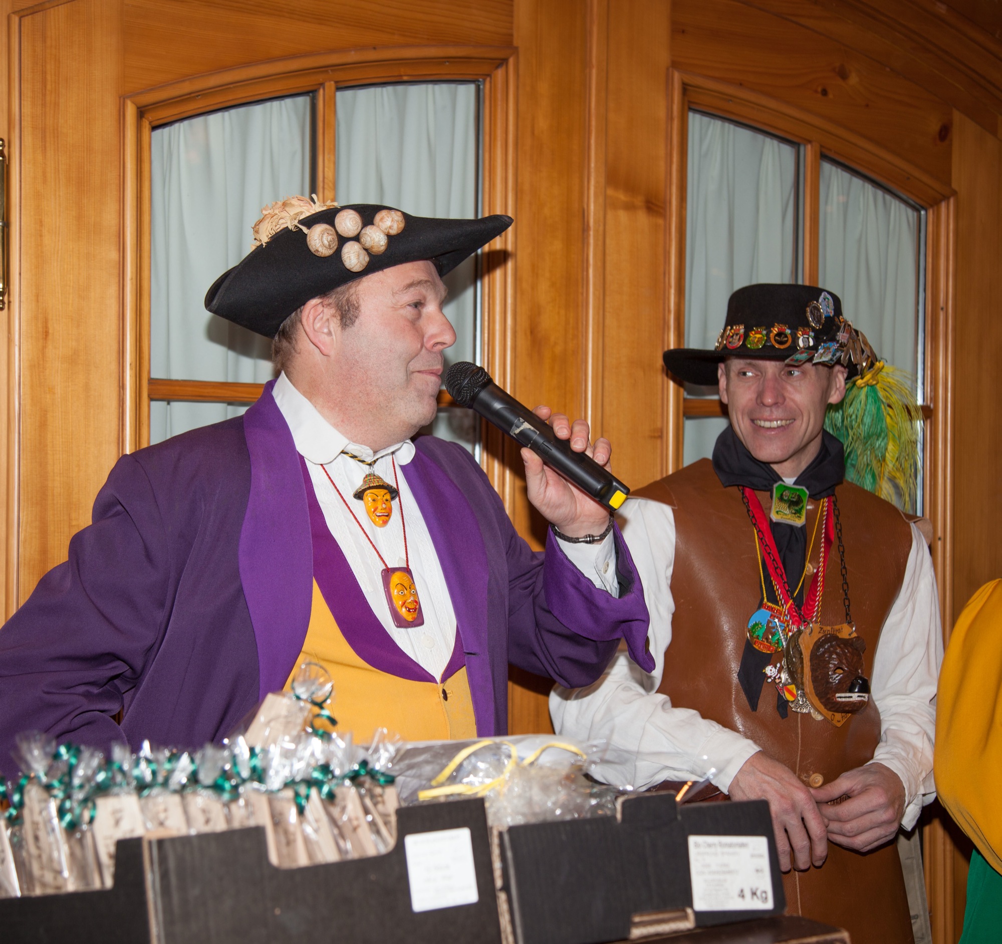 Den ersten Tag zum 44. Geburtstag hat die Bärenzunft zusammen mit den Vereinen und Fasentgruppen erfolgreich und ohne Zwischenfälle gemeistert. Nach der anstrengenden Nacht steht Zunftmeister Lothar Killig schon wieder bereit, um seine Kolleginnen und Kollegen aus dem gesamten südwestdeutschen Raum zum Fest zu begrüßen und ihnen das Gastgeschenk zu überreichen.