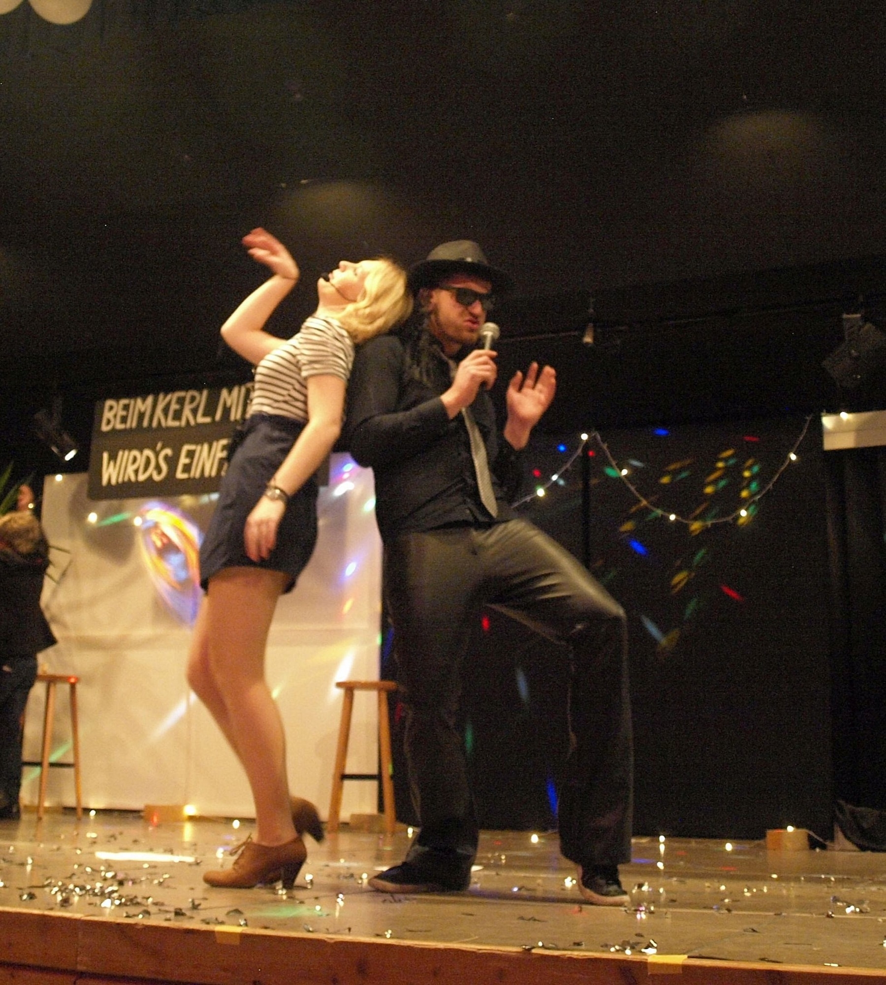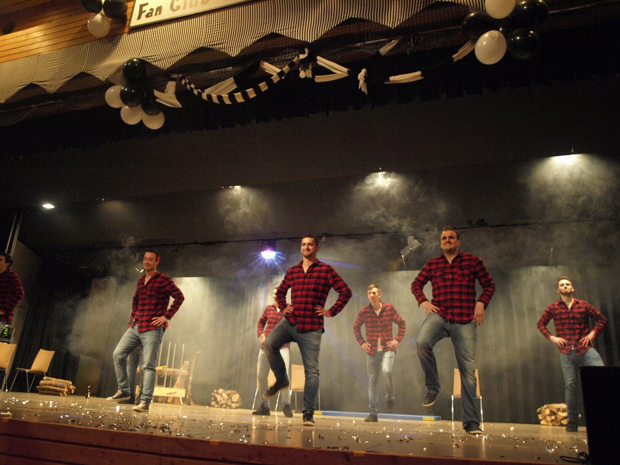 Zwei Hingucker waren auch wieder die Balletts. Was die Mädchen unter der Regie von Esther Braun boten, war eine perfekte Choreografie auf sportlich höchstem Niveau. Rustikal, aber nicht weniger eindrucksvoll zeigten sich die Burschen, die sich zu »Ich und mein Holz«, einstudiert von Pia Lehmann, als kernige Holzfäller präsentierten. Groß war der Applaus, als sich am Schluss noch mal alle Akteure auf der Bühne zeigten, von wo aus eine Polonaise in eine lange Nacht startete, zu der »Felix der Glückliche & Oxana« die passende Musik lieferten.