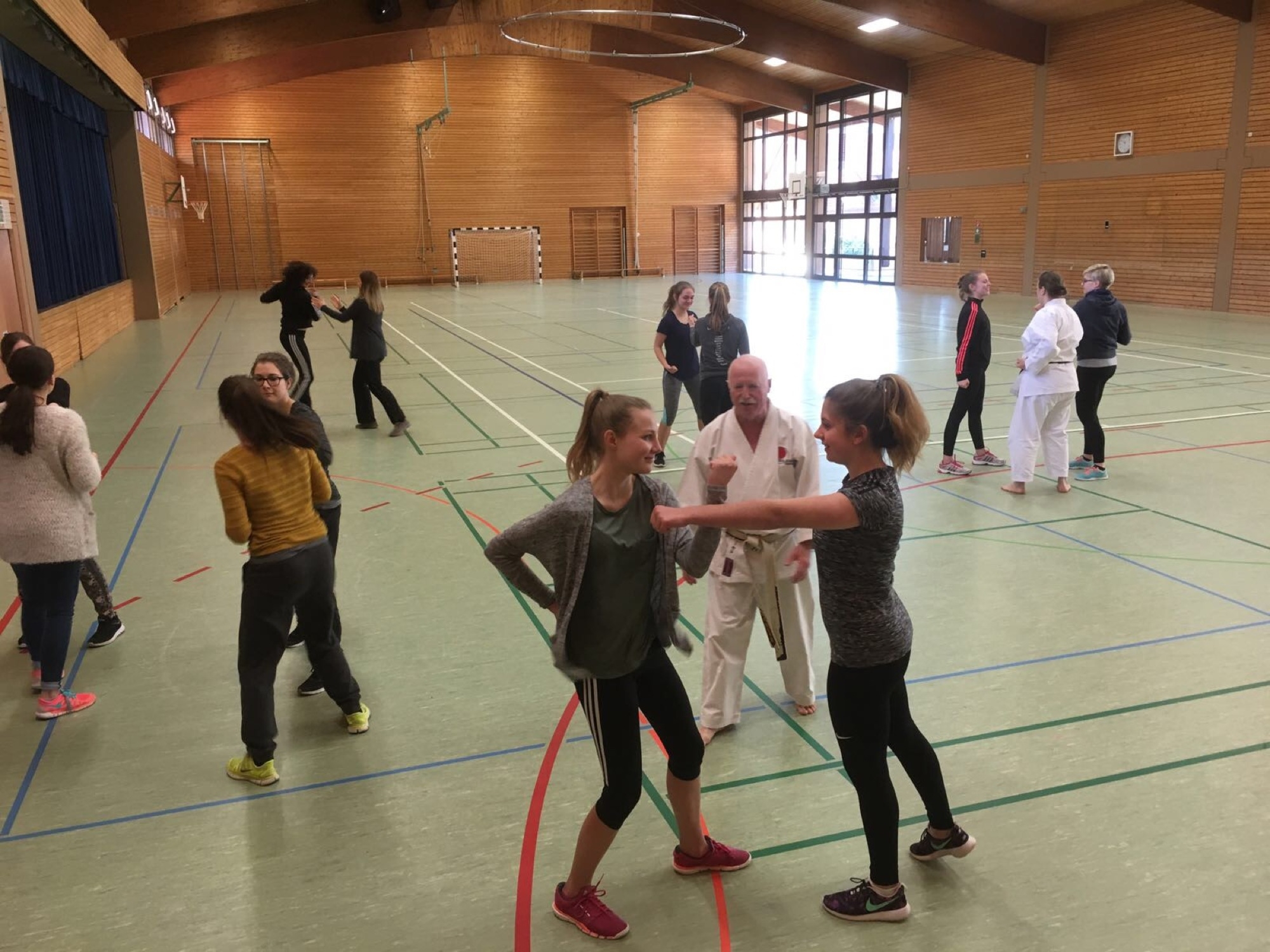 Als Übungsleiter konnten erneut die 4-fache Karate-Weltmeisterin Britt Grossmann, geb. Weingand, sowie ihr Vater und langjähriger Erfolgstrainer Kurt Weingand aus Bühlertal gewonnen werden. Nachdem der erste Kurs am 19. November auf regen Zuspruch gestoßen und restlos ausgebucht gewesen war und weitere Nachfrage bestand, hat der Vorstand der DJK Oberharmersbach sich entschlossen, im März 2017 einen zweiten Kurs anzubieten. Immer wieder würde man in der Presse und vor allem auch im nahen Umfeld mit furchtbaren Geschehnissen konfrontiert: Köln, Endingen, Freiburg und jüngst sogar Schiltach. Die permanent stärker werdende Gefährdung besonders der Mädchen und Frauen hätte ursprünglich zu der Idee geführt, einen solchen Kurs durchzuführen, nachdem eine Übungsleiterin des Vereins die Welt-, Europa- und Deutsche Meisterin in Karate, Britt Grossmann, bei einer Fortbildung in der Sportschule kennengelernt hatte.