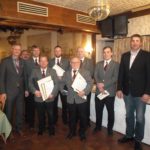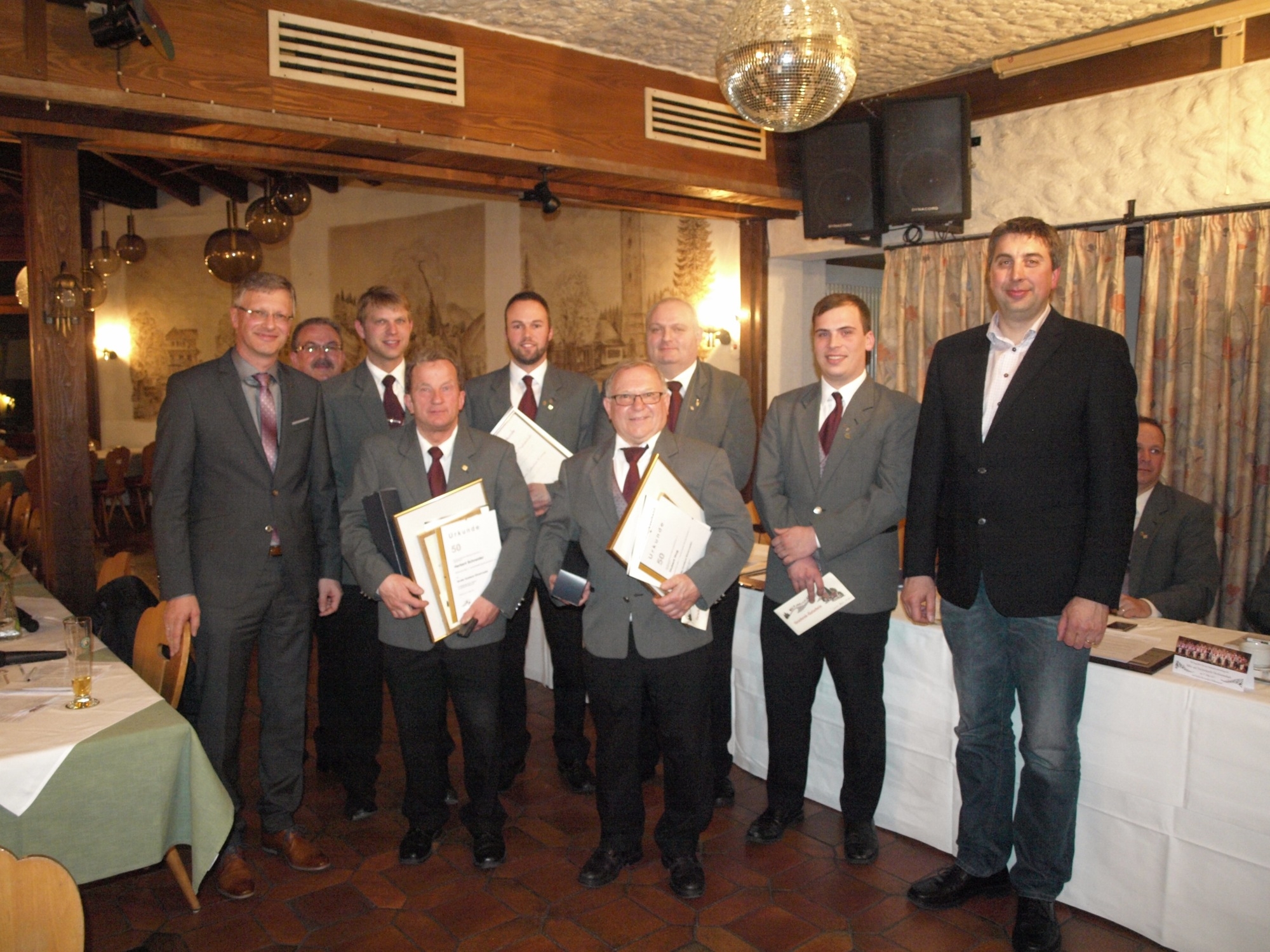 Die silberne Ehrennadel des Verbandes mit Urkunde erhielten für 25 Jahre aktive Dienstzeit Sebastian Kimmig, Christoph Isenmann und Tobias Lehmann, der an diesem Abend aber verhindert war. Vereinsintern wurden zudem noch Tobias Boschert (30 Jahre) und Sascha Huber (15 Jahre) von Vorstandsmitglied Friedrich Schneider geehrt. Für die Geehrten wurde der »Alte-Kameraden-Marsch« gespielt.