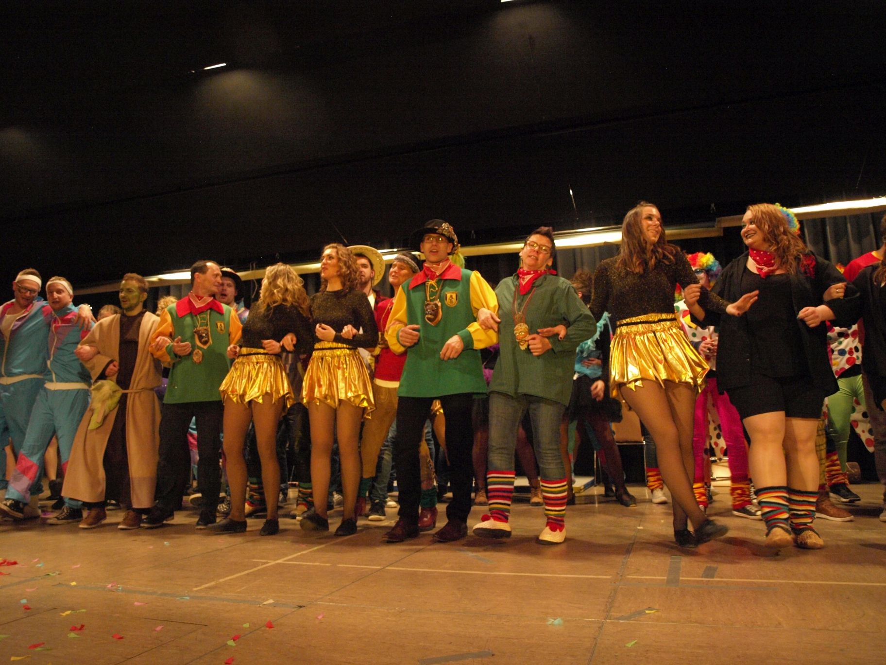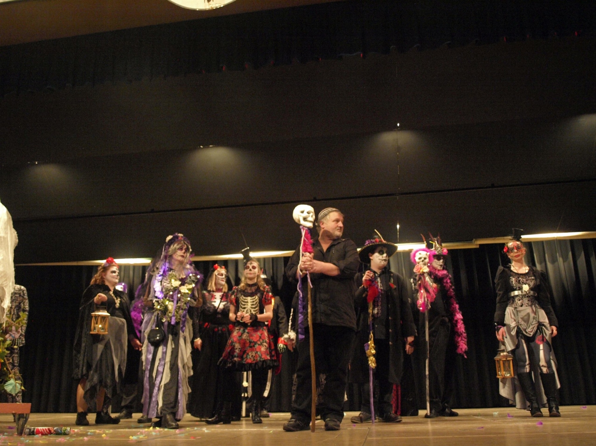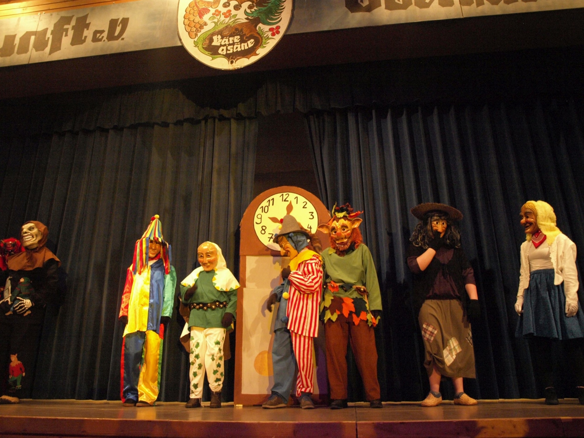 Als »Sir Francis Drake«, der Seefahrer der Queen, gewann Martin Bohn den Wettbewerb mit 186 Stimmen vor Lucia Schießl als »Bierdeckelschildkröte«. Die Erz-Närrin vom Schrofen nahm ununterbrochen schon zum 18. Mal teil. Ohne Konkurrenz heimsten bei den Paarmasken Ulrike Huber und Bianca Huber als »D’Kachel und ‘s Öfele« die von der Geschäftswelt gestifteten Preise ebenso ein wie die Gruppe um Reinhard Schwarz, die zum Thema »Die Zeit« ein kleines Spiel mit Tod, Teufel und Narrenfiguren inszenierte. Um die Attraktivität des Preismaskenballs zu erhöhen, veranstaltete die Bärenzunft zum ersten Mal einen Wettbewerb, bei dem das Publikum die schönsten Umzugskostüme bewerten konnte. Fünf örtliche Fasentgruppen stellten sich vor, von denen der Fanclub mit seinem Motiv »Tag der Toten« die meisten Stimmen erhielt. Dass eine tolle Stimmung in der Halle herrschte, lag zum einen an der Wiederholung der wunderbaren Tanzvorführen der Ballette von Unterdorfer, Dörfle, Fanclub und Zunft, die für ihre Darbietungen mit viel Beifall belohnt wurden. Zum anderen sorgte »Felix & Co« von den ersten Takten an für eine närrische Atmosphäre. Schlag Mitternacht gab es ein Geburtstagskind: Zunftmeister Lothar Killig wurde 50 Jahre alt. Mit dem Fastnachtsschlager »Am Rosenmontag bin ich geboren« gratulierte ihm schunkelnd der ganze Saal.