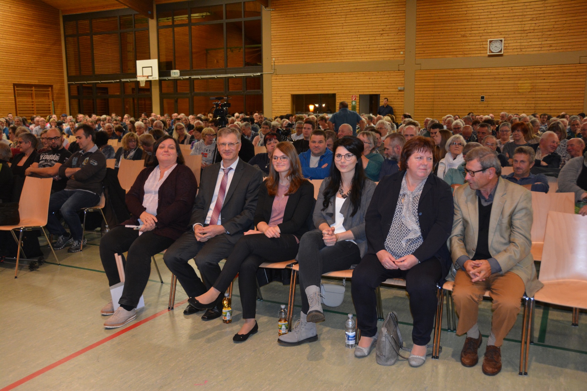 Für 800 Besucher war die Reichstalhalle gestuhlt, rund 700 Bürger und Bürgerinnen waren zur Kandidatenvorstellung gekommen. »Heute ist ein ganz besonderes Ereignis in der Gemeinde«, konnte Bürgermeister und Wahlleiter Siegfried Huber die zahlreichen Zuhörer begrüßen Das besondere Willkommen galt seinem Vorgänger im Amt, Bürgermeister a. D. und Ehrenbürger Otmar Ritter und seine Frau Gaby.