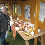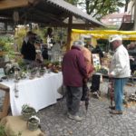 Trotz zeitweiligem Sonnenschein erinnerte der kühle Herbstwind daran, dass die warme Jahreszeit vorbei ist und bald der Winter vor der Tür steht. Daher waren wärmende Kleidung und Teespezialitäten zur Linderung von Erkältungskrankheiten gefragt. Gut besucht war auch der Secondhand-Markt für Damen- und Herrenoberbekleidung, Spielwaren und Bücher im Pfarrzentrum, organisiert von der früheren Frauengemeinschaft, dessen Erlös wieder einer sozialen Einrichtung zugute kommen wird. Auch das Rahmenprogramm stieß erneut auf ein großes Interesse, denn viele Menschen interessierten sich für den »Schaukasten altes Handwerk« im Park. In den aufgestellten Hütten konnte man zum Beispiel dem Schuhmacher oder dem Bürstenbinder bei ihrer Arbeit zuschauen. Viele interessante Informationen rund um das Thema Apfel bot eine Ausstellung. Allerdings hatte Organisatorin Miriam Pfundstein, beim Landratsamt zuständig für Obstbau und Pflanzenschutz, wegen des Frostes im Frühjahr einige Mühe, genügend Sorten als Anschauungsmaterial bereitzustellen. Auf einem Rundweg wurde »Herbstliches für die Sinne: Florales & Kunst« ausgestellt. Auch das Angebot für das leibliche Wohl stand ganz im Zeichen des Festtages, denn in den Gasthäusern stand der »St. Gallusteller«, Schweinebauch mit Brotfüllung, Wirsing und Schwenkkartoffeln auf der Speise­karte.