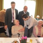 Traditionell wurden die ältesten Teilnehmer am Seniorengemeinschaftstag geehrt. Alt-Uhlen­bäuerin Cäcilia Lehmann, Jahrgang 1920, und Edmund Lehmann, Jahrgang 1929, erhielten von Bürgermeister Huber ein Weinpräsent.