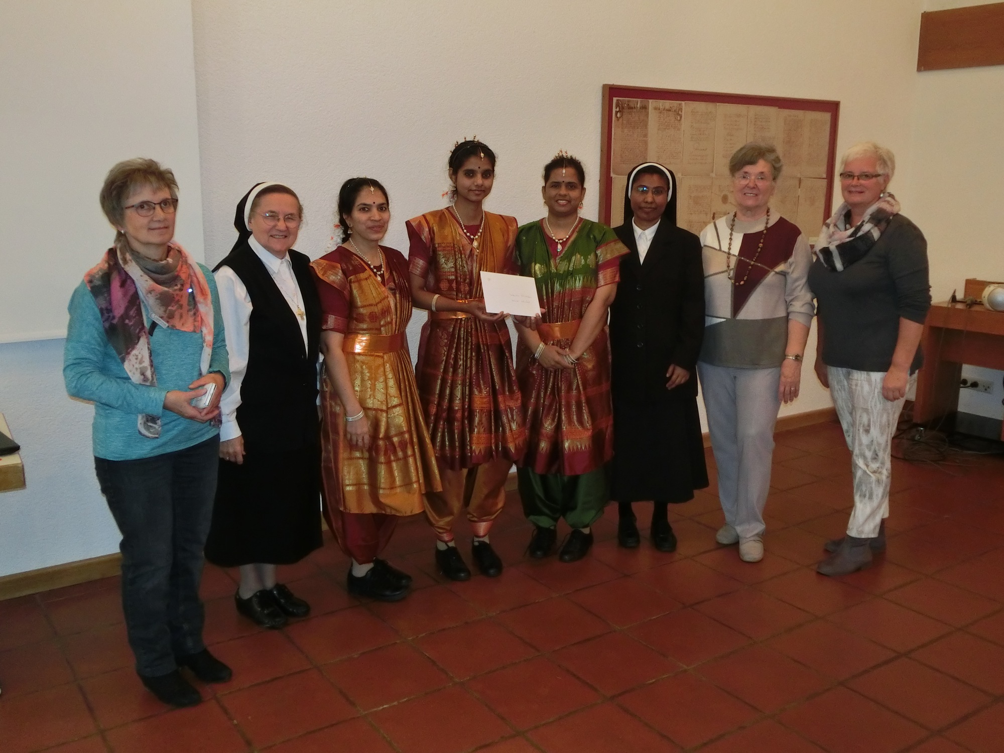 Das Missionsteam konnte den Schwestern eine Spende in Höhe von 1.000 Euro für ihre weitere Arbeit übergeben. Diese wurde freudig entgegengenommen. Vor dem Mittagstisch tanzten die Schwestern nach indischer Tradition in ihren bunten Gewändern das »Vater unser«, was ein Hauch von Fernost ins Pfarrzentrum zauberte.
