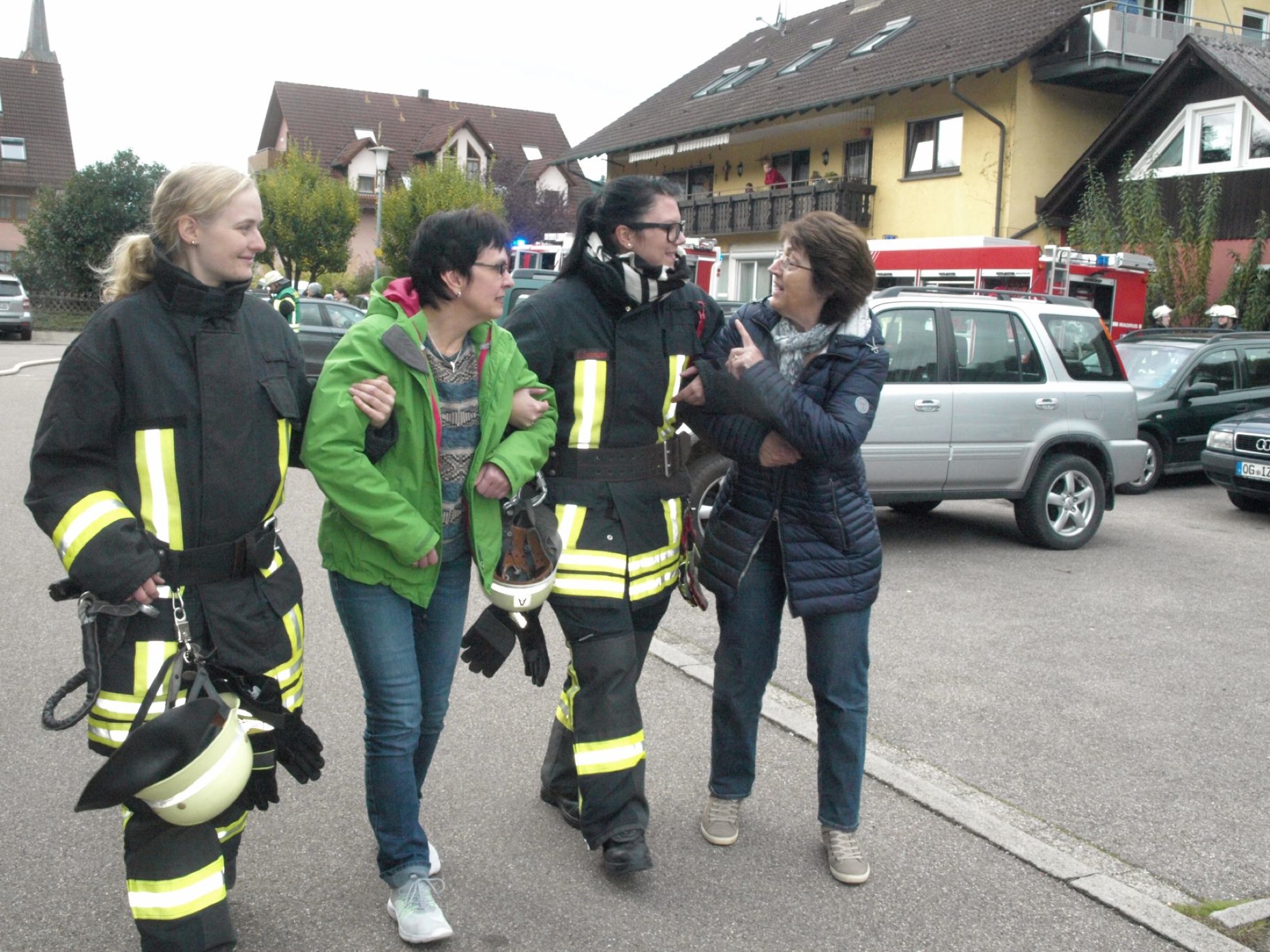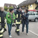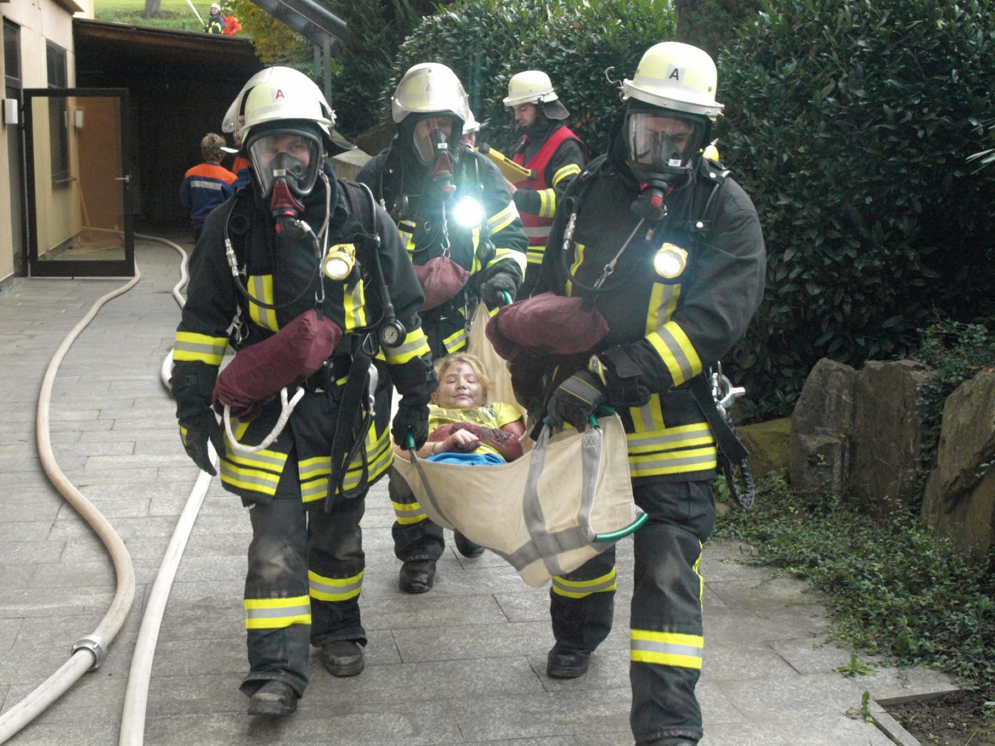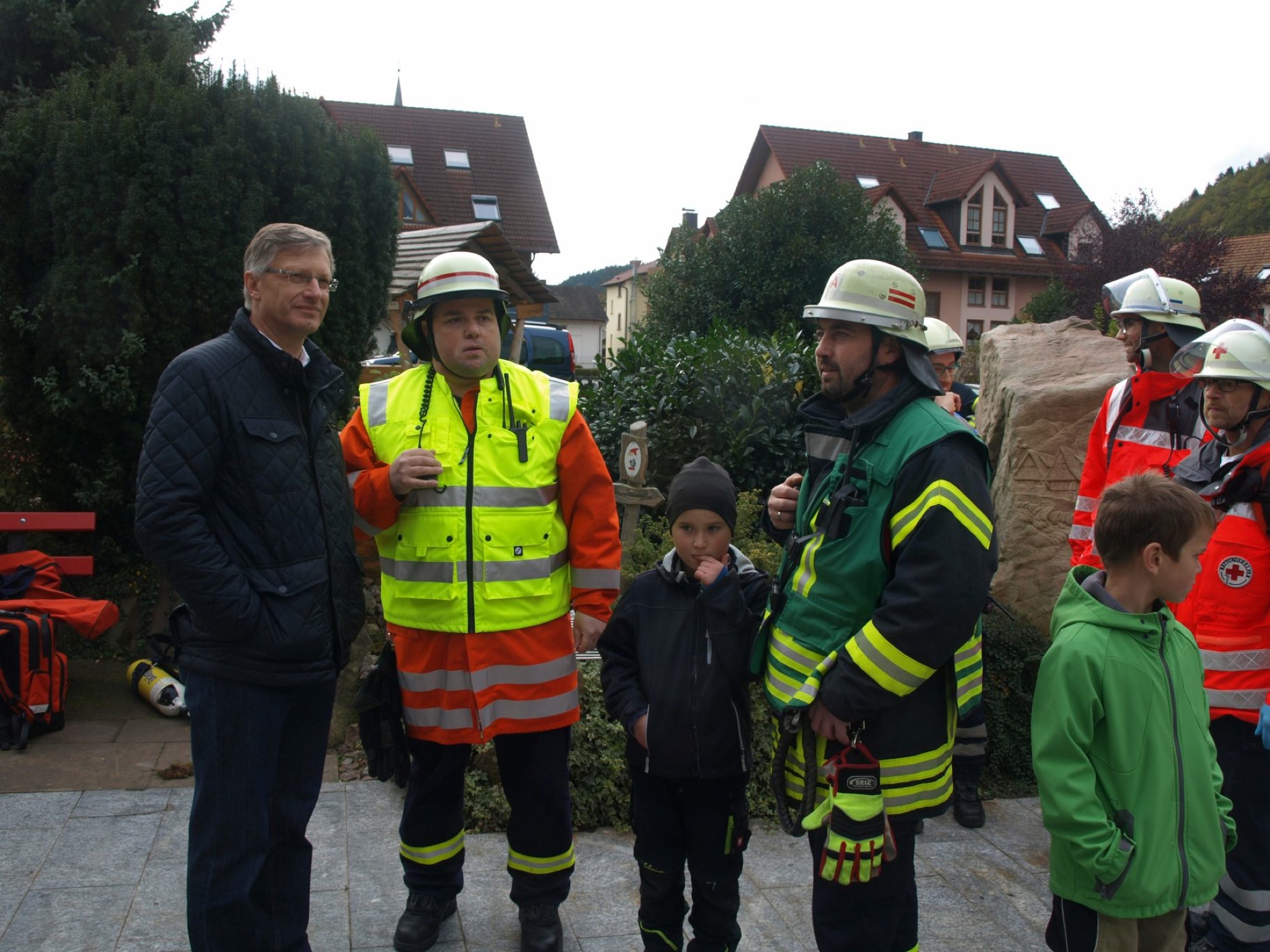 Für die Atemschutzträger war es nicht einfach, in dem völlig verqualmten »Labyrinth« des Technikbereichs nach den Eingeschlossenen zu suchen und sie zu bergen. Unter den »Opfern«, dargestellt von der Jugendfeuerwehr, war auch ein Feuerwehrmann, der bewusstlos geworden war und von seinen Kameraden ins Freie gebracht wurde. Reibungslos klappte die Zusammenarbeit mit dem DRK-Unter-/Oberharmersbach, das unter der Leitung von Julian Schilli mit elf Helfern vor Ort war und die Erstversorgung der Verletzten vornahm. Unter den zahlreichen Zuschauern war auch Bürgermeister Siegfried Huber, der sich zu Ablauf und Ziel der Übung informieren ließ.