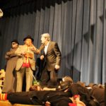 Eine Programmnummer nahm das Publikum anschließend auf eine Zeitreise in die Vergangenheit mit, als es noch eine Hauptschule gab und der Rektor eigene Mathebücher verfasste. Die Schüler (Sebastian Haaser und Florian Isenmann) haben hier jedenfalls was fürs Leben gelernt, wie aus ihren Antworten zu hören war, auch wenn der Lehrer (Volker Schwarz) dazu manchmal nur den Kopf schütteln konnte. Weil er die Aufgaben in seinem eigenen Buch nicht kapierte, fiel die Mathestunde aus. Mit der Schülerversion von »Rock mi«, wozu die ganze Halle begeistert den Rhythmus lieferte, endete der Unterricht. Dass auch die Besucher noch etwas lernen konnten, nämlich wie »Deutsch-Türkisch« richtig gebildet wird, zeigte eine weitere lustige Episode aus einem Klassenzimmer (»Ey Alter, bin ich Fadine«). Auf einer Drehbühne wurden Sketche im Minutentakt präsentiert und Tanzdarbietungen durften natürlich nicht fehlen.