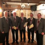 Landolin Jilg wurde aufgrund seiner langjährigen Mitgliedschaft und seiner Verdienste im Verein zum Ehrenmitglied ernannt. Außerdem erhielten die Jubilare für 50 Jahre Mitgliedschaft die große Silbermünze der Gemeinde Oberharmersbach und die große goldene Ehrennadel des Bundes deutscher Blasmusikverbände verliehen. Der stellvertretende Verbandspräsident Manfred Schafheutle überreichte den Geehrten die Urkunden. Für 25 Jahre aktive Mitgliedschaft erhielt Martin Isenmann die silberne Ehrennadel des Verbandes, die zusammen mit einer Urkunde von Schafheutle überreicht wurde und der den Geehrten für ihre Vorbildfunktion dankte. Vereinsintern wurden des Weiteren für 45 Jahre aktive Mitgliedschaft Jürgen Armbruster und Ewald Glatz geehrt, für 15 aktive Jahre Alisa Jilg, Franziska Faist und Christian Lehmann, der an diesem Abend leider verhindert war.