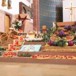 Gemeinsam mit den Landfrauen, die alljährlich den Gabentempel in der Pfarrkirche St. Gallus gestalten, trugen sie Lebensmittel zusammen, um die Gaben insgesamt nach dem Gottesdienst, den die Kinder vorbereitet und mitgestaltet haben, der Tafel in Offenburg zu spenden. Unser Bild zeigt die Kinder der 4. Klassen mit dem Ergebnis ihrer Sammelaktion. Auf den Stufen zum Altarraum breitete sich am Sonntag der reichlich gedeckte Tisch für die Tafel aus.