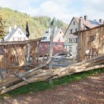Von der »Pirateninsel« legt die »Molly« ab, ein Segelschiff mit Sandkasten. Nebenan haust im »Hus« der »Drei-Finger-Jack«. Im »Gefängnis« besuchen Mäuse die Gefangenen, und wer Bewegung sucht, kann entweder den »Ritt auf der Kanonenkugel« wagen oder sich vorsichtig über die »Schlangengrube« bewegen. Zwei Türme mit einer Rutsche verbindet ein Floß, das Kinder mit Muskelkraft hin- und herziehen können. »Viele Ideen kamen uns erst beim Bau«, blickt Bernd Huber zurück und will damit aber nicht die verzögerte Fertigstellung begründen. Es sei einfach nicht eher möglich gewesen. »Und bei aller Begeisterung mussten wir auch immer die Sicherheit der Kinder im Auge behalten«, ergänzt Stefan Lehmann. Kein Spalt dürfe zu eng oder zu groß sein, kein Weg zu steil, um die spielenden Kinder nicht zu gefährden. Rund 230 Stunden und ungefähr 15.000 Euro investierte die Gemeinde in dieses familienfreundliche Projekt.