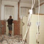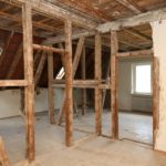 Auch sonst sind die Räumlichkeiten kaum wieder zu erkennen. Überall herrscht im wahrsten Sinne des Wortes »Tag der offenen Tür«. Die abgehängten Decken in den dreieinhalb Meter hohen Räumen sind entfernt, im ehemaligen Ratszimmer stützen Stahlsprieße die Decke, da die Wände des Grundbucharchivs komplett eingerissen sind. Hier wird ein großer Stahlträger eingezogen. Rote Backsteine zeigen, wo in den Nasszellen die Fliesen den Charme längst vergangener Jahrzehnte ausstrahlten.