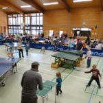 So spielten viele Erwachsene die verschiedenen Tischtennisvariationen durch und dabei fanden auch ganz kleine Tischtennisschläger ihren Einsatz.