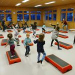 Ein weiteres Highlight waren die Step-Aerobic- und Zumba-Einheiten für Jedermann in der Halle. Die Übungsleiterinnen Simone Lehmann, Simone Maier sowie Alexandra Kempf luden Freiwillige und Interessierte ein, für rund 15 Minuten diesen Sport auszuüben. Auch hier fanden sich dann recht schnell jeweils über 20 Teilnehmer ein und absolvierten je eine Einheit. Vermutlich kam dabei der ein oder andere auch etwas ins Schwitzen.