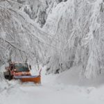 Zügig läuft es Richtung Durben. Immer wieder dreht der versierte Unimogfahrer das 3,20 Meter breite Schild, um den Schnee von der Straße talwärts zu schieben. Er stößt vor und zurück, um eine Ausweichstelle zu schaffen oder wiederholt auf einer zwei Kilometer langen Strecke die Räumung, um bei der Talfahrt die komplette Fahrbahnbreite frei zu bekommen.