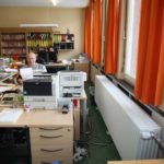 Es ist hier einiges anders. Corinna Kornmayer, Sekretärin des Bürgermeisters, hat im Provisorium deutlich mehr Platz zur Verfügung als vor dem Umzug. »Und wir haben jetzt wenigstens einen Sozialraum« gewinnt ihre Kollegin im Raum, Hauptamtsleiterin Dominika Hättig, dem neuen Domizil eine positive Seite ab. Das ehemalige Lehrerzimmer ist entsprechend häuslich eingerichtet. »Die Übergangslösung passt und trotzdem freut sich wohl jeder auf die neuen Räume«, blickt sie in die nahe Zukunft. Den Umzug zurück ins Dorf scheue sie kaum. Schließlich, so rechnet sie vor, seien rund zehn Tonnen Akten und Unterlagen vernichtet worden und rund acht Tonnen habe der Sportverein anlässlich seiner Altpapiersammlung mitgenommen. Um diesen Ballast müsse man sich jetzt nicht mehr kümmern.