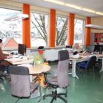 »Im Sommer war es schon manchmal unangenehm«, schildert Simone Faist die heißen Tage, als die Sonne durch die großen Fenster die Räume aufheizte. Doch jetzt spürt man im Bürgerbüro eine angenehme Temperatur, Pflanzen ergänzen das angenehme Raumklima. Martha Weiß und Theresia Armbruster fühlen sich mit ihrer Kollegin Simone Faist offenkundig wohl in dem übersichtlichen Raum, den sie für sich und die Bürgerinnen und Bürger angenehm eingerichtet haben.