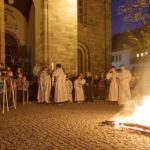 Das riesige Kirchenschiff war nur von Kerzen erleuchtet, bis Orgel und Glocken nach dreitägigem Schweigen in den österlichen Jubel einstimmten und somit auch das Licht die Kirche erhellte.