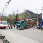 Dass für das kommende Vierteljahr hier durchaus ein neuralgischer Punkt besteht, zeigte sich anschaulich während der Verlegearbeiten. Zum letzten Mal bog ein Langholzfahrzeug vom Riersbachtal kommend auf die L 94 ein. Über die Behelfsbrücke wird das so nicht mehr möglich sein und auch andere größere Fahrzeuge werden wegen der begrenzten Möglichkeiten ihre Fahrkünste aufbieten müssen.