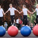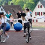 Richtig Action war auf dem Hof, als die Zirkus-AG ihren Auftritt hatte. Es wurde auf Bällen gelaufen, Einrad gefahren. Rasante Runden auf den Boards zu fetzigen Techno-Beats fehlten ebenso wenig wie akrobatische Einlagen. »Das Einrad ist das Gerät, das am trainingsintensivsten ist«, informierte Lehrer Paul Hug. Er zeigte sich umso froher, dass es möglich war, wieder eine präsentierfähige Einrad-Truppe am Start zu haben. Nicht zuletzt ist das Nele Schwarz und Mara Lehmann zu verdanken. Die beiden Gymnasiastinen – ehemaligen Brandenkopfschülerinnen – kommen als Lehrbeauftragte regelmäßig in die Schule, um solch zirkusreife Nummern mit den Schülerinnen und Schülern einzustudieren.