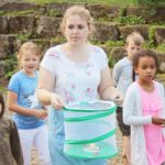 Zur Verpuppung, so konnte beobachtet werden, hängen sich die Raupen an den Deckel der Box. Die Puppen trocknen und sind nach drei Tagen hart. Das ist die passende Zeit, sie von überschüssiger »Haut« und Schmutz zu befreien und vorsichtig in das Aufzuchtnetz umzusetzen. Dabei lernten die Kinder: Damit ein hübscher Schmetterling entstehen kann, braucht es viel Ruhe. Wenn es zu laut ist, klappt es nicht.