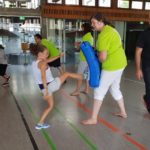 Wie schon in den vergangenen Jahren, konnte auch dieses Jahr wieder Christian Benz von der Kampfsportschule Lahr »Sukhothai Gym« für diese Aktion gewonnen werden. Trotz ziemlich hohen Temperaturen waren die Mädchen eifrig bei der Sache. In Gruppenarbeit wurde gelernt Angriffe abzuwehren und sich zu verteidigen. Ebenso wichtig ist es schnell wegzulaufen und laut auf sich aufmerksam zu machen. Gerade das scheint vielen schwer zu fallen. Unter den wachsamen Augen des Trainers, haben sich am Ende der Stunden die Vorstandsmitglieder des ausrichtenden Vereins mit Schlagkissen den Schlägen und Tritten der Mädchen gestellt, so dass diese das Gelernte ausprobieren konnten. Die Teilnehmerinnen waren sich einig: »Es war anstrengend, aber wir haben was gelernt und wir kommen bestimmt nächstes Jahr wieder!«