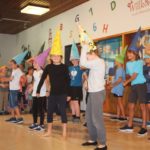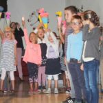 Die Viertklässler hatten Schultüten gebastelt und gezeigt, dass diese mehr enthalten als nur Süßigkeiten. Sie führten damit einen Tanz auf, bei dem die Schultüte in verschiedene Bewegungsabläufe integriert war.
