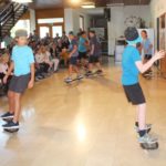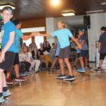 Auch die Zirkus-AG hat mit zwei Programmpunkten die Einschulungsfeier bereichert. Nach einem kurzen Rollenspiel zeigten die Jungs der 4. Klasse, was sie auf dem Waveboard alles drauf haben. Im Anschluss daran gab es eine Zirkusvorführung, bei dem die Seelöwen Rick, Ruck und Rock (Carla Lehmann, Maren Berger und Ryan Rösch, alle Klasse 4) unter der Leitung von Zirkusdirektorin Zoe Atamaniuk (ebenfalls Klasse 4) zeigten, zu was Tiere in der Lage sein können.