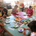 Bereits im Vorfeld wurde fleißige Vorarbeit im Hause der Bürgermeisterfamilie Weith geleistet. Hier sägte man viele verschiedene Formen wie Blumen, Fische, Vögel und Schmetterlingen aus einem Stück Holz aus, so dass die Kinder am Programm-Nachmittag sich ihr Wunschmotiv aussuchen konnten und dieses selbst bunt anmalten, mit Punkten verzierten oder mit Perlen ausschmückten und damit alles nicht nur schön aussieht, wurden die Figuren mit einem Metallstock versehen, so dass es nun in vielen Gärten bunte fröhliche Gartenstecker zu bestaunen gibt.
