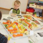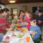 Die Schulkindbetreuung am Nachmittag hat sich ebenfalls mit dem Thema Gesundheit beschäftigt. So wurde während dieser Projekttage Obst geschnippelt und zu Obstsalat verarbeitet, sich bei Traum- und Entspannungsreisen erholt und neue Kerzen aus altem Wachs hergestellt.