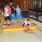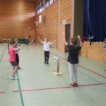 Am Mittwoch stand zum vierten Mal die sogenannte Spaßolympiade auf dem Plan. Der Sportlehrer Paul Hug hat 16 verschiedene Stationen geplant und zusammen mit Eltern aufgebaut. Die Stationen wurden von Lehrern und Eltern betreut. Die Schülerinnen und Schüler konnten sich in kleinen Gruppen an den verschiedenen Stationen einfinden und gemeinsam die dort zu erledigenden Aufgaben – sportlicher Natur – erfüllen. In den Kategorien »Klasse 1 und 2« und »Klassen 3 und 4« wurden am Ende der Spaßolympiade jeweils die drei besten Gruppen gekürt, die in einer Siegerehrung Medaillen erhielten.